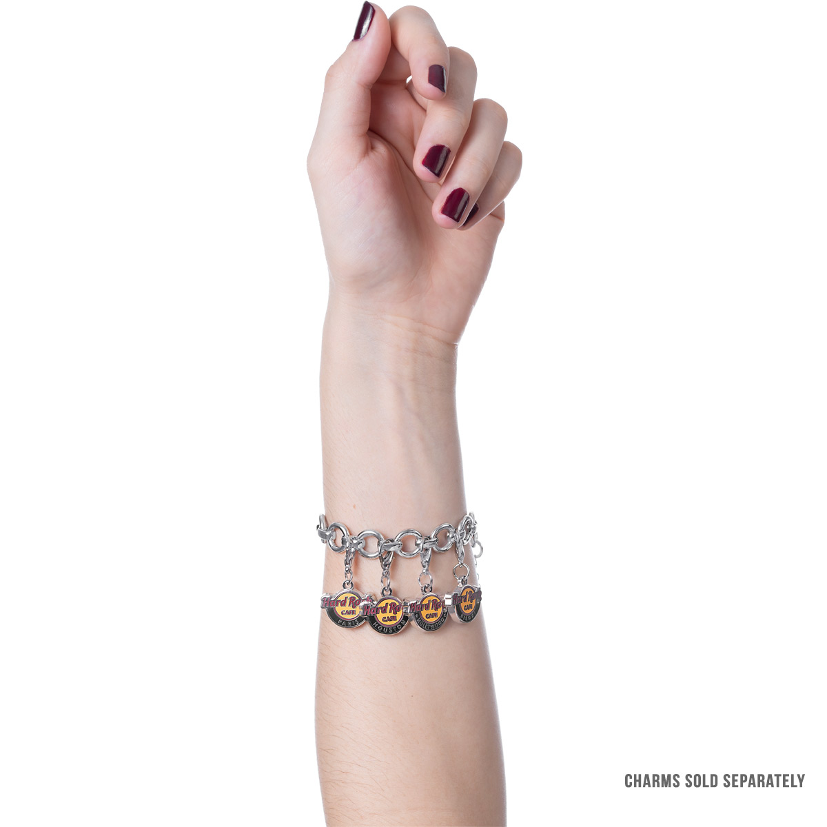 Classic Logo Charm Start collecting and making memories with this Hard Rock classic logo charm. This charm is versatile enough to be worn as a necklace pendant as well. Add them to the Hard Rock Charm Bracelet.