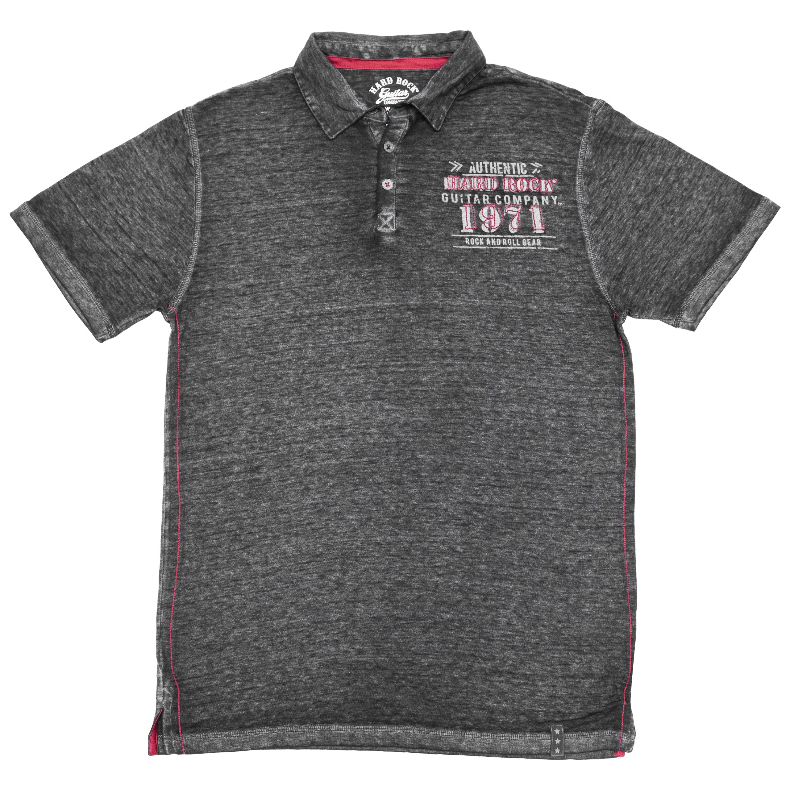 Guitar Company Polo in Grey with Red Stitching Make a style statement with our Hard Rock Guitar Company Polo. Our men’s polo, features an embroidery Guitar Company logo at the left chest with a distinctive red stitching along edges of tee. Purely resonates with the spirit of Hard Rock. Designed for comfort and a perfect adult fit, it’s a versatile addition to anyone’s wardrobe.