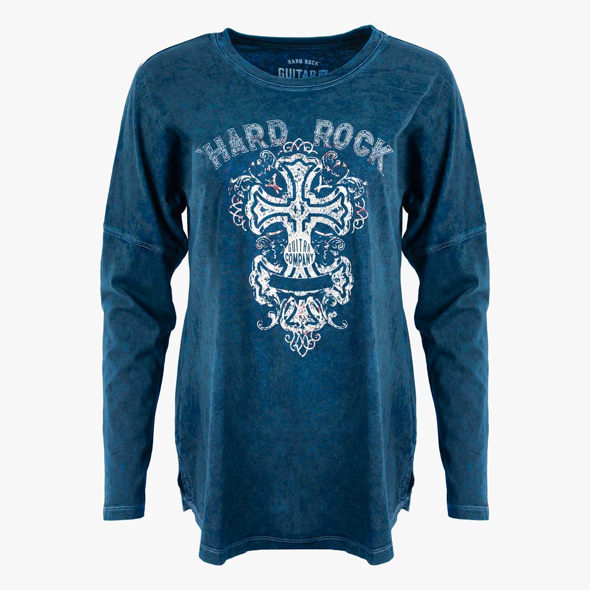 Guitar Company Slim Fit Dropshoulder Longsleeve Tee in Navy
