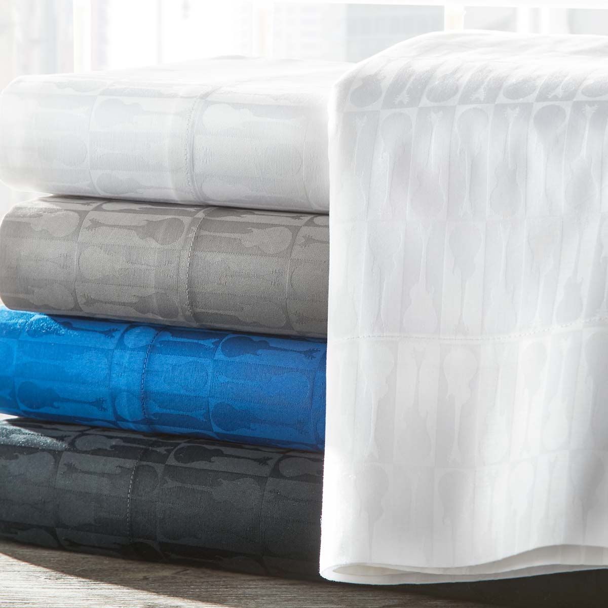 Hard Rock Hotel Queen Jacquard Duvet Cover A subtle guitar print is woven into the front face of this 300 Thread Count Jacquard Queen Duvet cover, with a vertical strip on the back face. From our Hard Rock Hotel collection. Includes 1 White Duvet Cover. Pair it with our Hard Rock Hotel Queen Sheet Set.