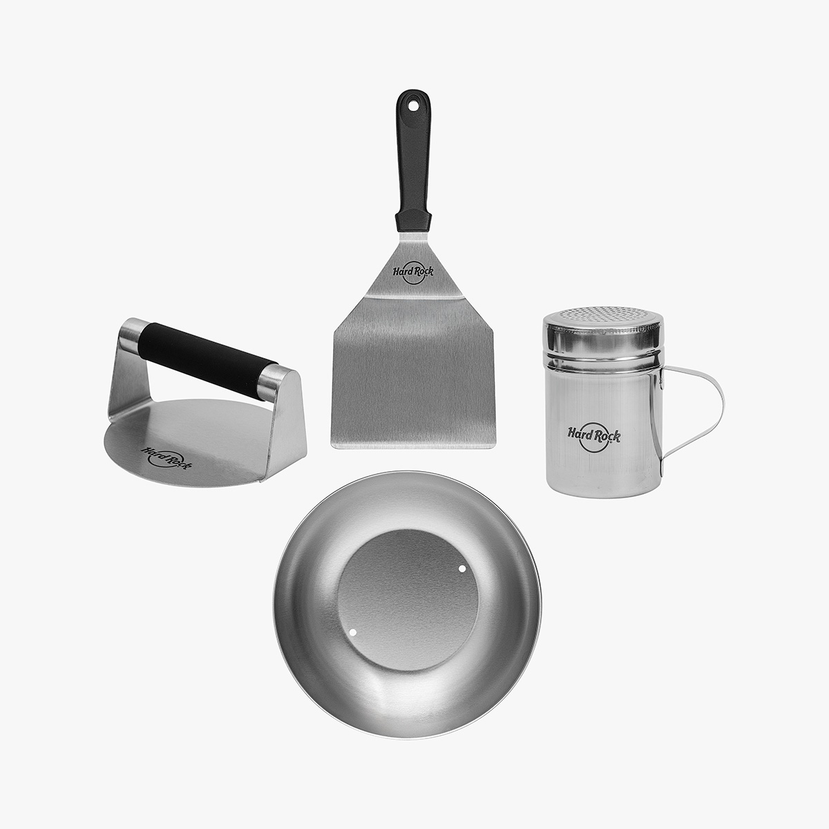 Your homemade burgers just leveled up. The Legendary Smash Burger Set is crafted for high-heat grilling and flat-top precision, featuring durable stainless steel tools built for serious backyard cooks. This 4-piece grilling kit includes a heavy-duty burger press, wide stainless steel spatula, fine-mesh seasoning shaker, and a domed melting lid — everything you need to recreate restaurant-style smash burgers with crispy edges and juicy centers. Engineered for performance and branded with the iconic Hard Rock name, this set is a must-have for outdoor cooking, summer BBQs, and burger night perfection. Whether you’re refining your grill setup or shopping for a grill master, this all-in-one burger tool set delivers big flavor and pro-level results.