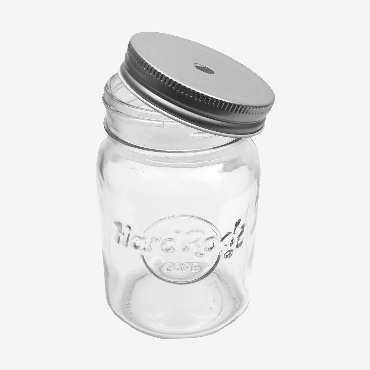 Logo Mason Jar with Straw Hole Lid A southern staple hits the stage as the latest star in our customized drinkware collection. Sip or serve everything from sweet iced tea to handcrafted cocktails, herbaceous-infused lemonades and sparkling sangrias in these classically refined mason jars. Features include embossed Hard Rock logo and straw hole in the lid.